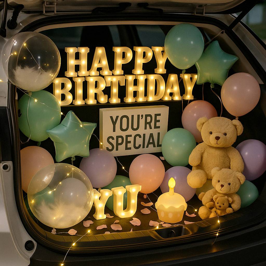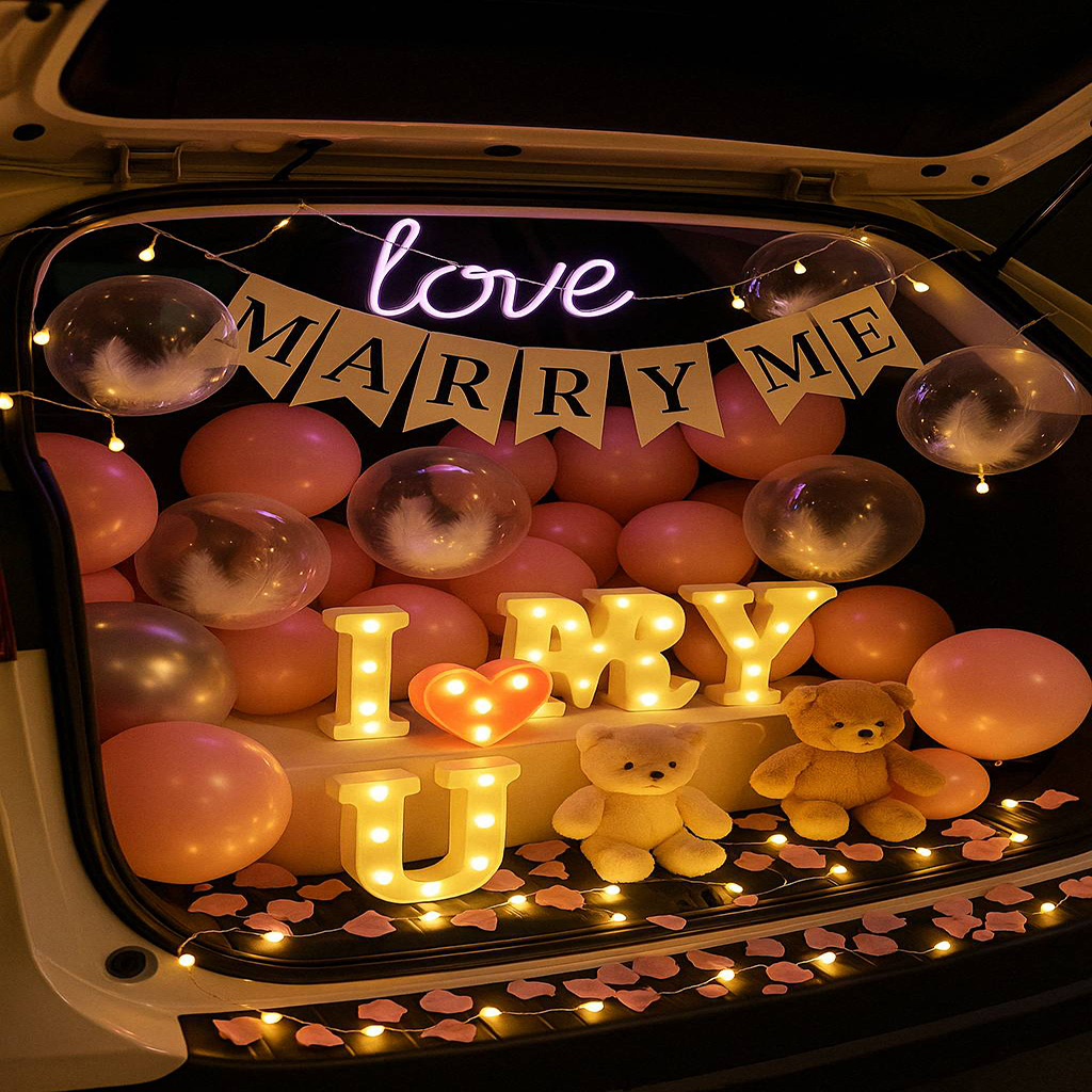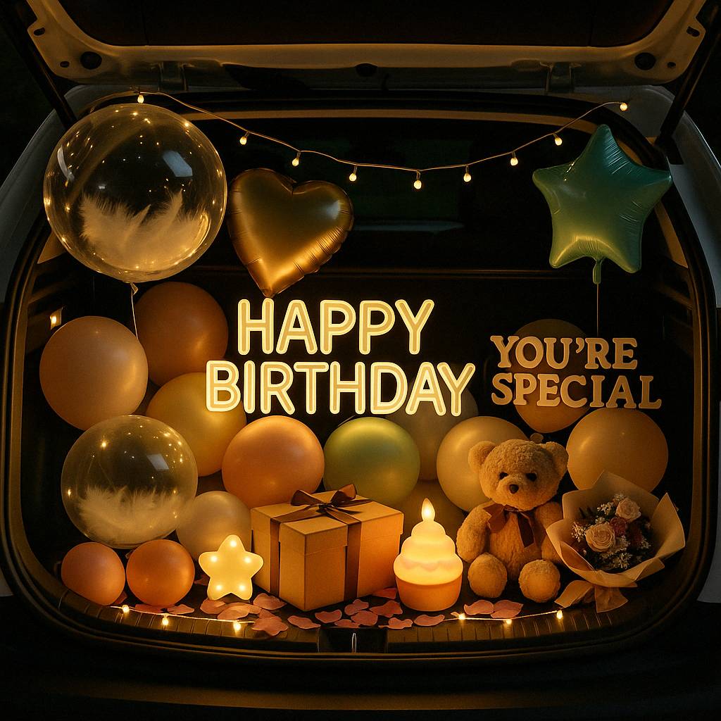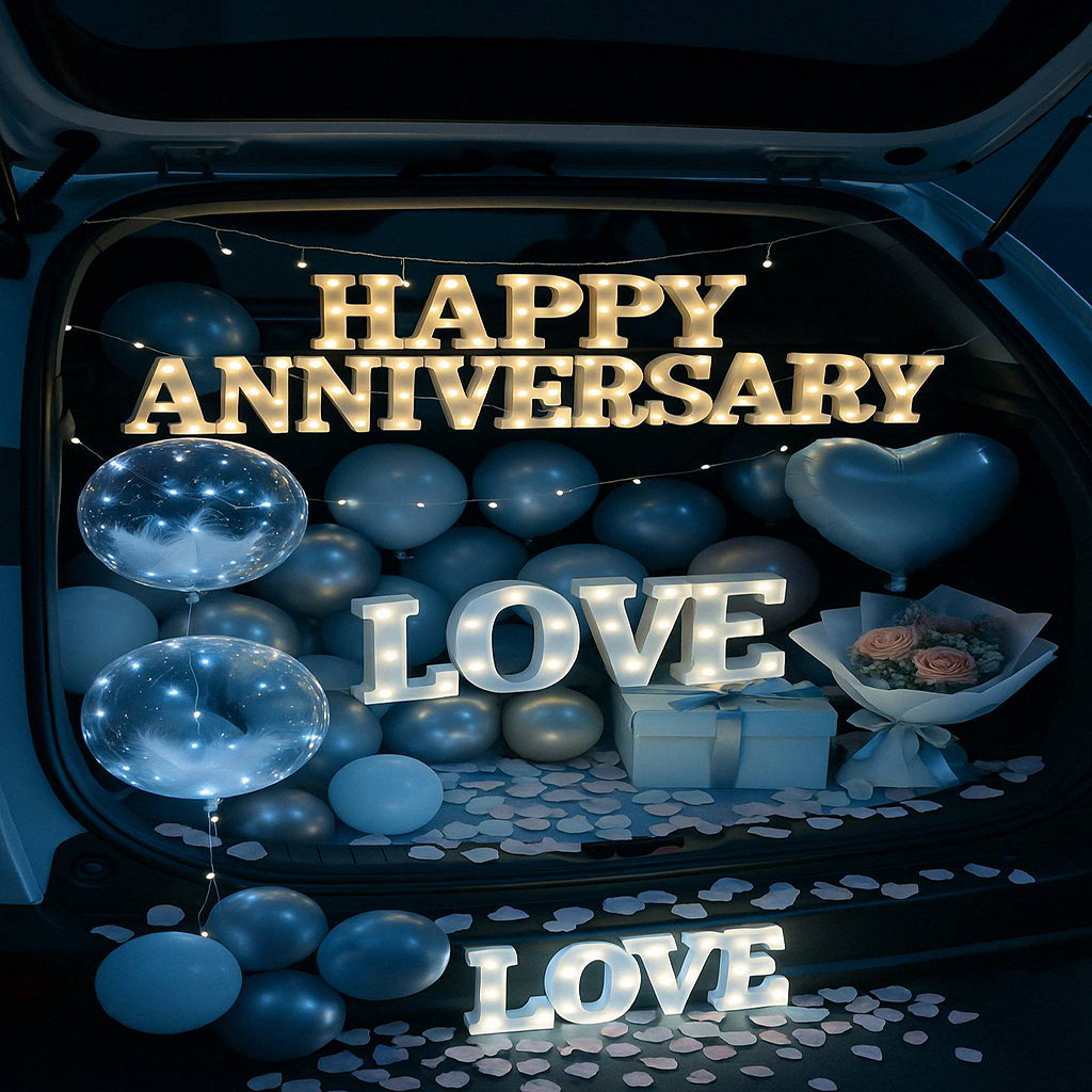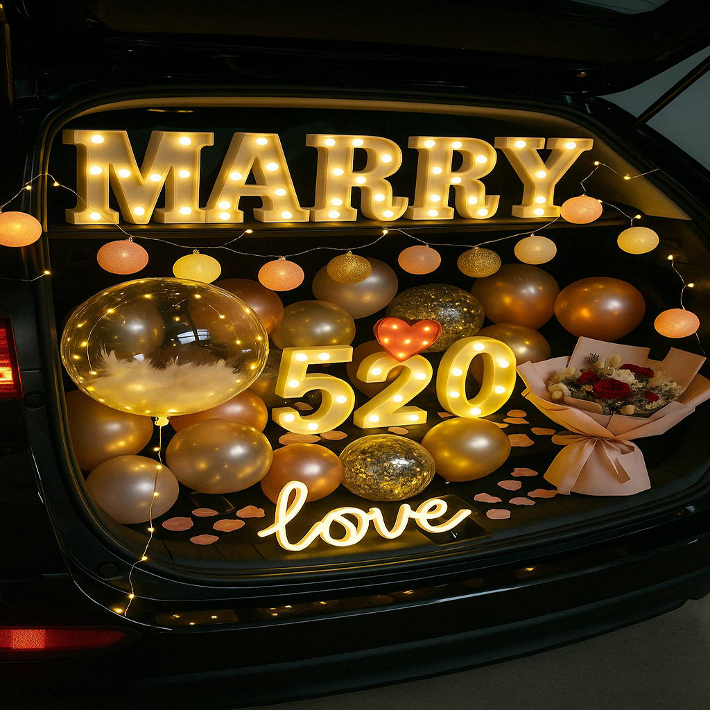 從告白、求婚、生日、紀念日到性別揭曉派對,後車廂搖身一變,成為充滿氣球、燈飾、花束與回憶的夢幻空間。