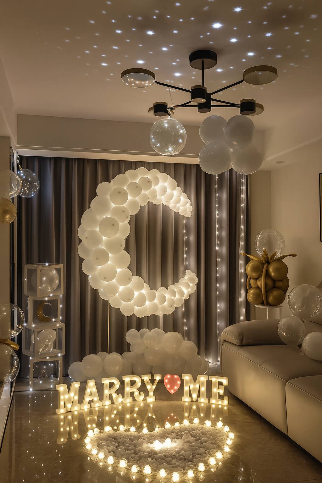Marry Me 求婚氣球佈置 字母燈 浪漫場景