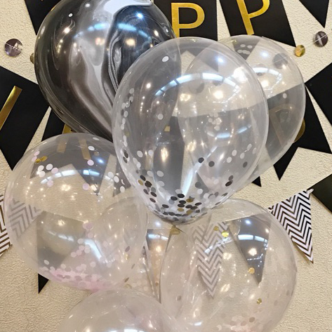 10吋 / 12吋乳膠氣球,內裝亮片或彩紙片,適合慶生、求婚、小朋友抓週等場合。