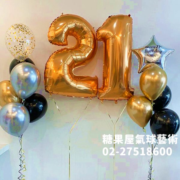 🔸 40吋金字數字球+氣球串(21歲主題)