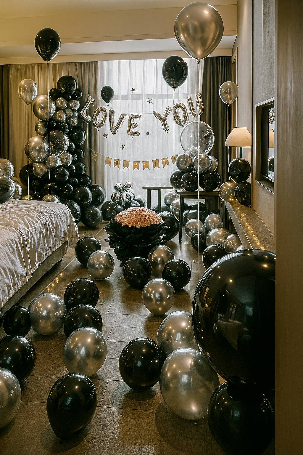 黑金風 I LOVE YOU 求婚驚喜氣球佈置