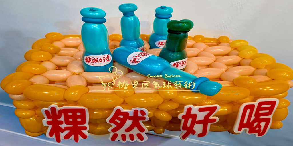 糖果屋氣球推出「懷舊小物 + 氣球應援」主題佈置,將台灣最經典的飲品元素融入氣球創作中,包括彈珠汽水、搖搖馬、陀螺、復古飲料箱與郵筒造型等,再搭配可愛動物氣球設計,讓活動現場呈現出溫馨又活潑的懷舊氛圍。